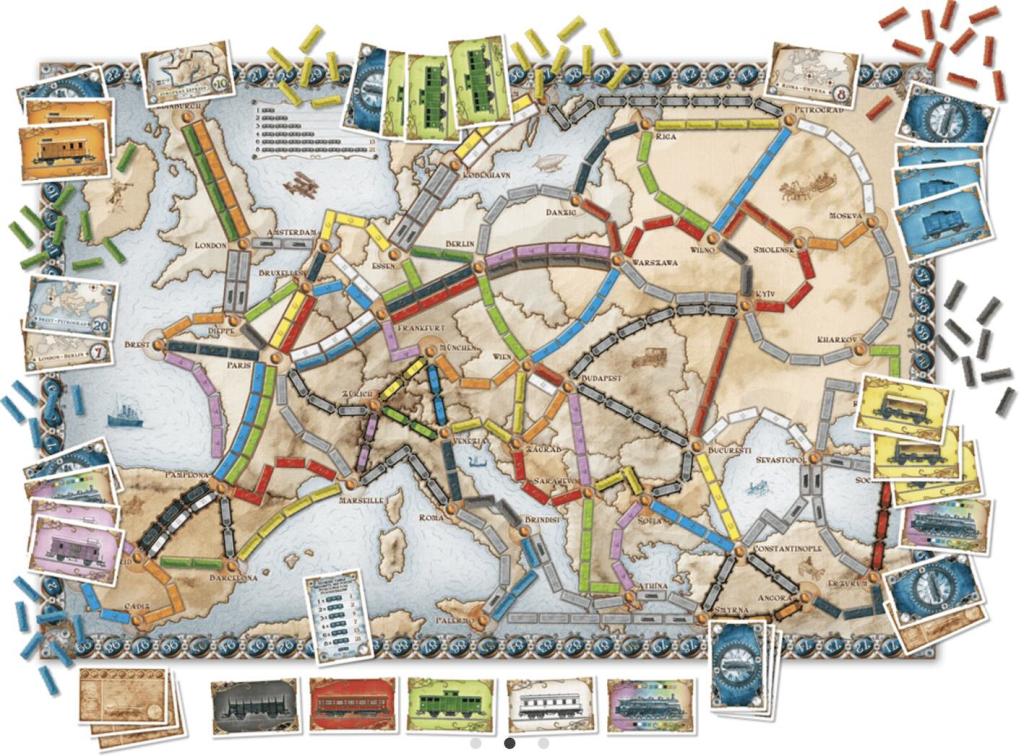 Un très grand classique et l’un des piliers du renouveau des jeux de plateaux dans les années 2000. Connu en France sous le nom des Aventuriers du rail. De nombreuses versions (dont certaines compatibles) font circuler ses trains dans divers pays et langues. Joli et astucieux, c’est un jeu de pose paisible qui plaira aux familles, mais également aux stratégistes! .