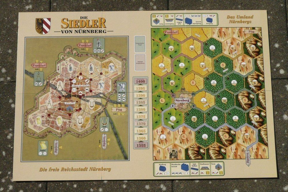 La version utilisée est celle de l’anniversaire de la ville de Nüremberg avec ces deux cartes (non modulaires) campagne et ville. Ce n’est pas une extension, mais un jeu indépendant.