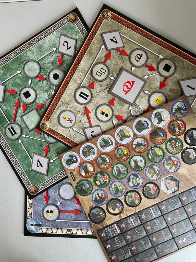 Un jeu coopératif sur le thème de l’univers de Tolkien (ici avec une extension) . Un très beau jeu à l’originalité certaine et à l’ambiance unique comme l’anneau 🙂 Aucune certitude de gagner contre le jeu…