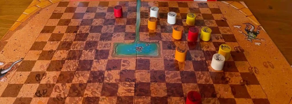 Un jeu de course original et fun à partir d’un mécanisme connu (les dames chinoises). Plus tactique qu’il ne semble…