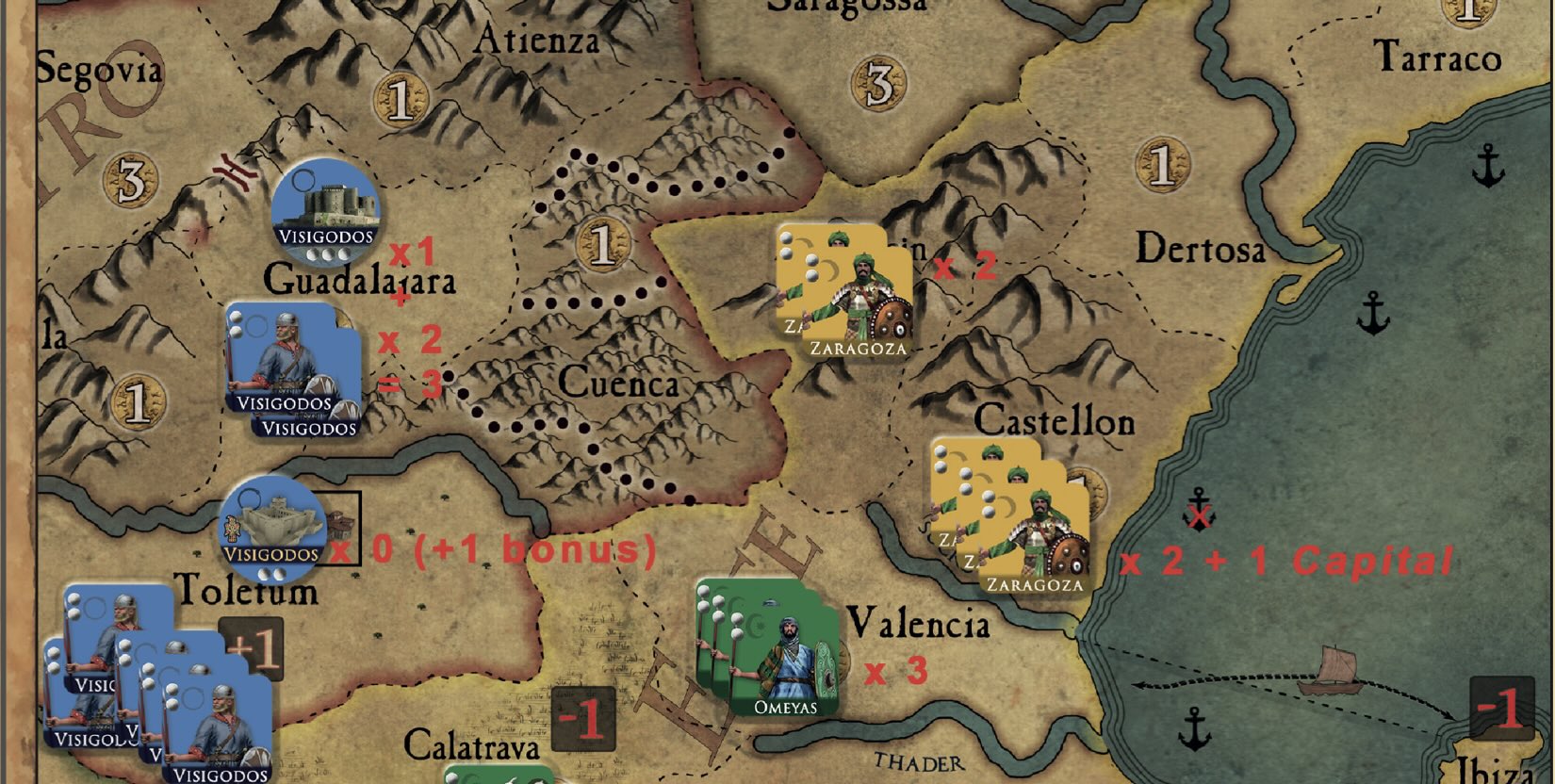 2000 ans d’histoire de l’Espagne en commençant avec les Carthaginois et en finissant par la Reconquista. Une fantastique épopée guerrière et un voyage dans le temps pour ce jeu atypique qui s’adresse en particulier aux amateurs de wargames. Sans être complexe, il demande une lecture de nombreux éléments de règles.