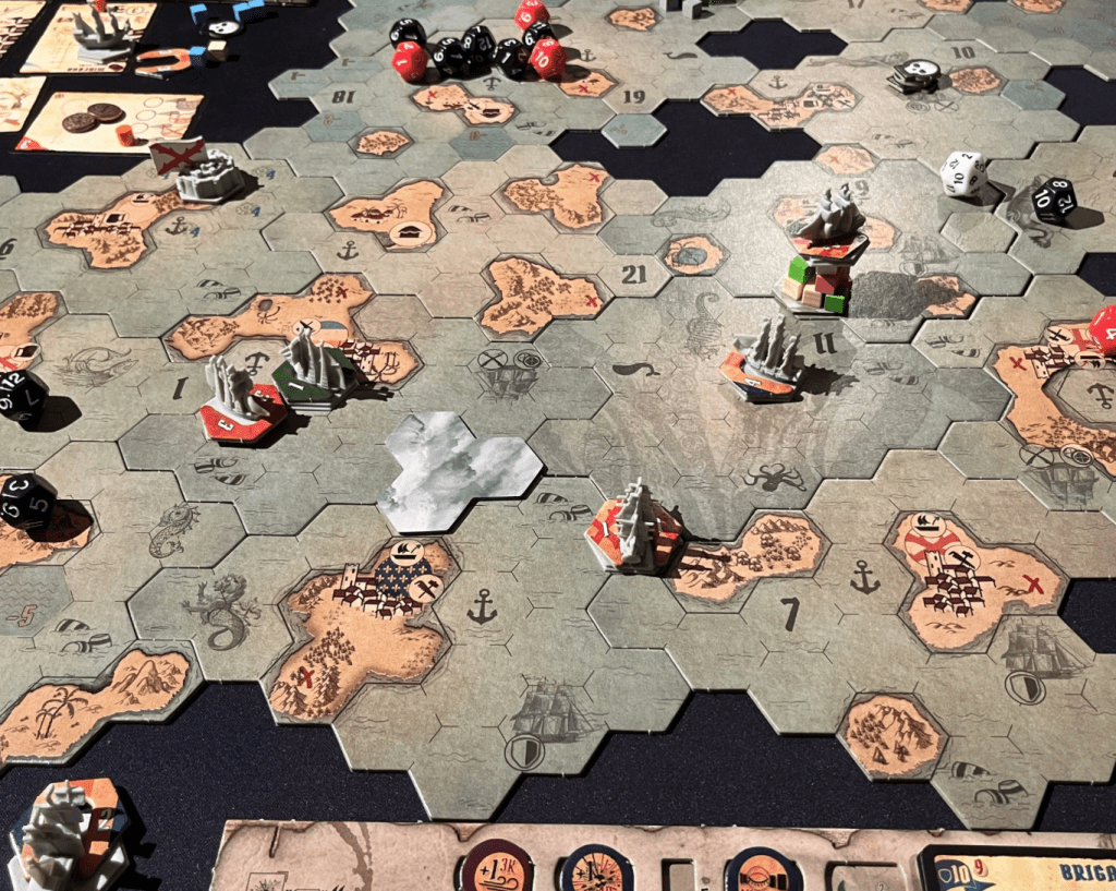 Des règles en français bienvenues pour ce gros jeu qui part dans tous les sens! Une grande liberté de manoeuvres et de rencontres pour ce jeu hors normes qui vous embarque vers la grande aventure des mers. Le jeu utilisé comprend l’extension Chine & Portugal.