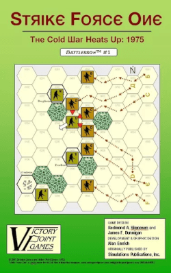 Pour une rapide découverte du mécanisme des hexagones, symboles des wargames, nous utilisons « strike force one » (écrit ici avec des lettres russes pour faire guerre froide, thème du jeu). Quatre tours et 9 pions. Il permet tout de suite de savoir si le « wargame » est fait pour vous ou pas…