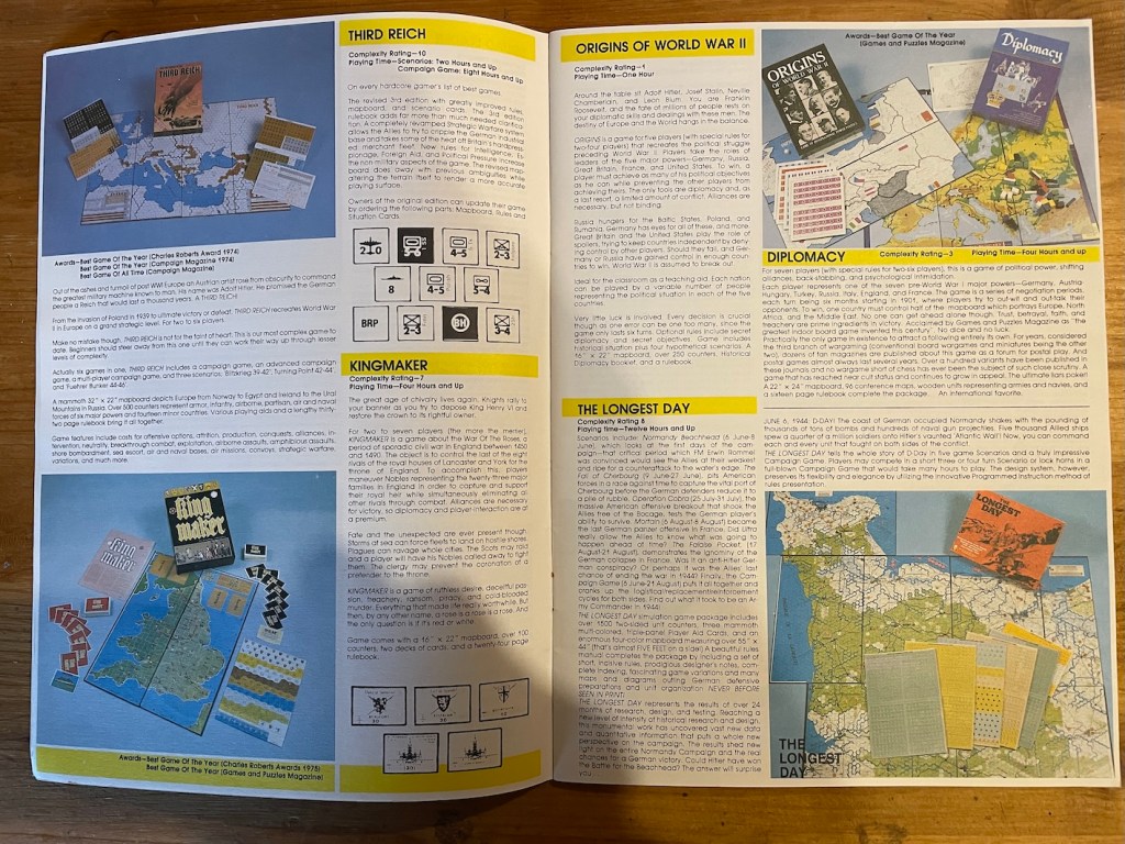 Les jeux de simulations historiques (wargames) ont connu une époque faste il y a quelques décennies avec, en particulier, les éditions Avalon Hill et SPI. Certains faciles, d’autres extraordinairement complexes, ils proposaient de rejouer des batailles d’à peu près toutes les époques ou d’offrir des simulations tactiques sur plateau ou avec figurines. Notons que ce sont les wargamers qui sont à l’origine de la création de D&D et de Warhammer.