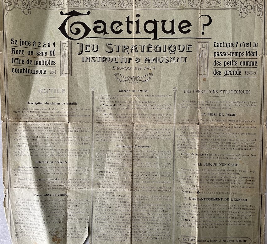 Un jeu de la guerre 14-18, Tactique. Un jeu de circonstance car déposé en 1914 probablement après la prise de Reims et la bataille de la marne.